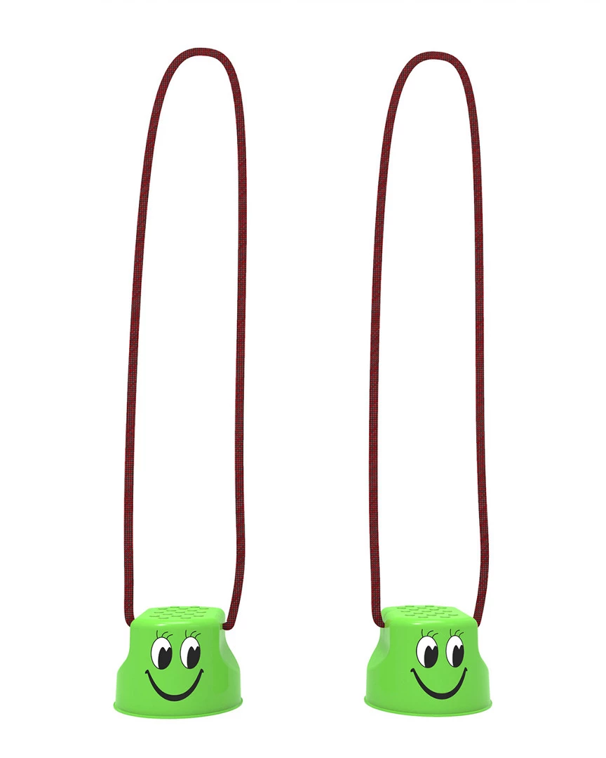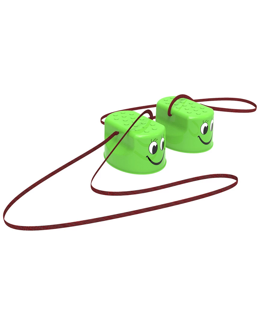 - Let your kids explore the world from a new height and feed their imagination with the Cup Walking Stilts by Hey! Play! This new take on a classic toy helps teach your children balance, hand-eye coordination and gross motor skills while encouraging creativity during playtime. The sturdy plastic construction makes these great for both indoor and outdoor play. Both cups feature non-slip treads on top for extra safety as your child plays. Each stepper has an adjustable nylon rope, so boys and girls of varying ages and sizes can have hours of fun. The smiley face design is fun and engaging, which encourages children to play. These stilts are not only ideal for playtime at home but for use in childrens theatre and day camps to spark kids imaginations and develop skills.