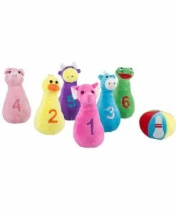 - Design details: Toddlers and preschoolers will love playing with this bowling set. The plush animal friends are soft to touch and easy to grasp for small hands and will help develop their hand eye coordination. Nurturing cognitive development for your child has never been easier with this educational game. The bright and colorful plush pin are numbered one through six to help teach your toddlers basic numbers and color recognition all while having fun.