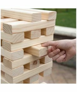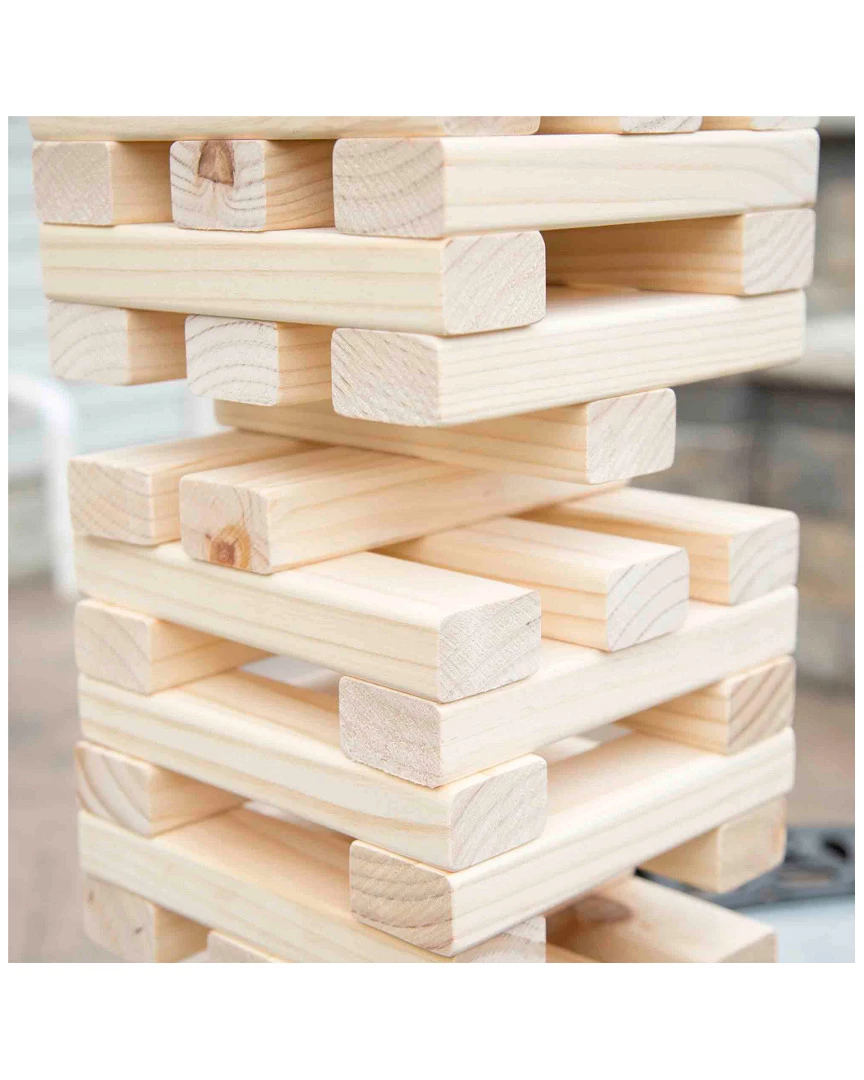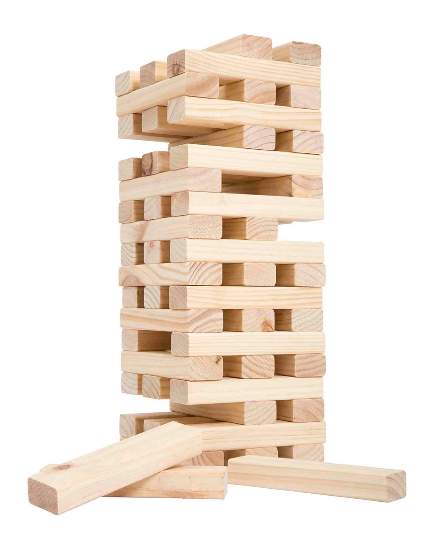 - These dimensions allow the game to be set up with spaces between the blocks, making it much more challenging than traditional stacking games
