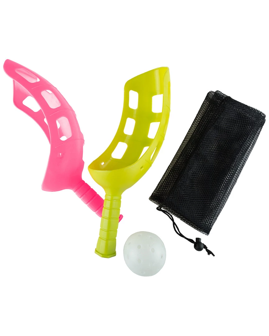 - COMPLETE SET Game includes two scoop racquets and one softball size ball. The scoops are made of heavy duty plastic with easy flexibility to help in developing hand-eye coordination and strong throwing motion for kids.