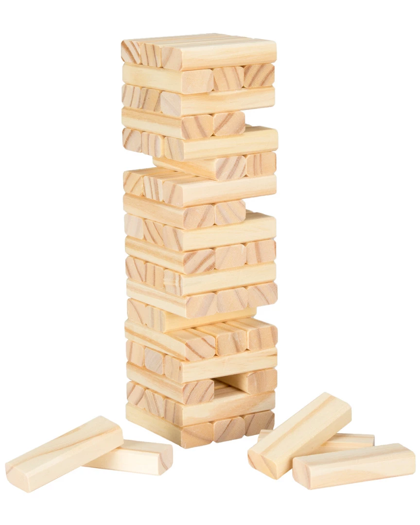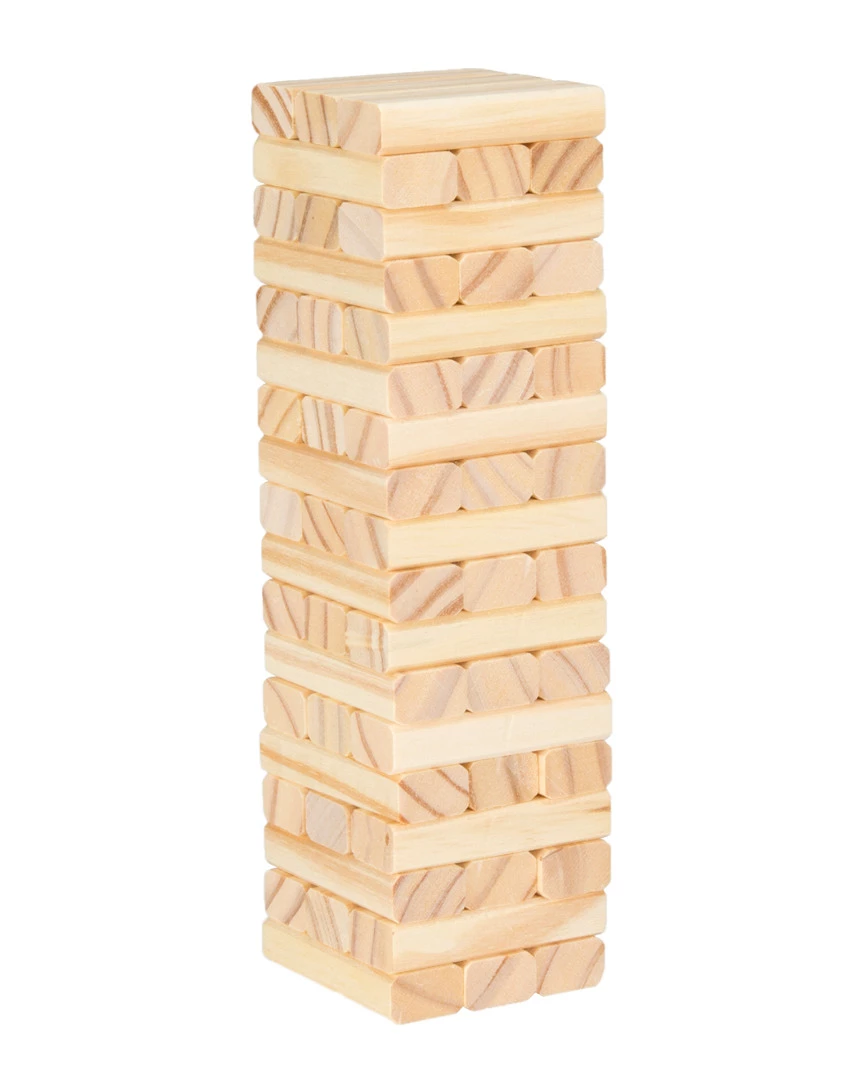 - The Hey! Play! Desktop Wooden Wobble Stacking Game is for the young and young-at-heart! Combine skill and strategy to stack the 54 pieces of beautifully crafted pinewood as high as you can, without wobbling the stack, causing it to crash down