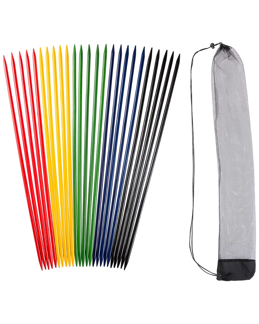 - PRODUCT DETAILS Set includes 25 giant wooden pick-up sticks with pointed ends measuring 31.5a long and .5a in five colors: red yellow blue green and black. A mesh carrying case with a long strap is included to make storage and transport easy. Made for two or more players.