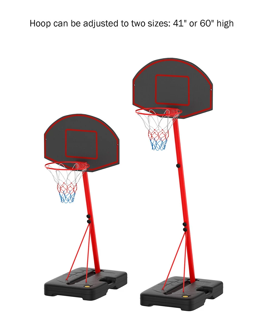 - The Junior Basketball Hoop by Hey! Play! is a great starter set for your childs introduction to the game of basketball. With an included 7-inch youth ball, air pump and adjustable height basketball pole and backboard system, this set makes it easy for your child to practice their shot. This classic sports set will help both boys and girls improve their coordination and gross motor skills, while they have fun in their own yard!