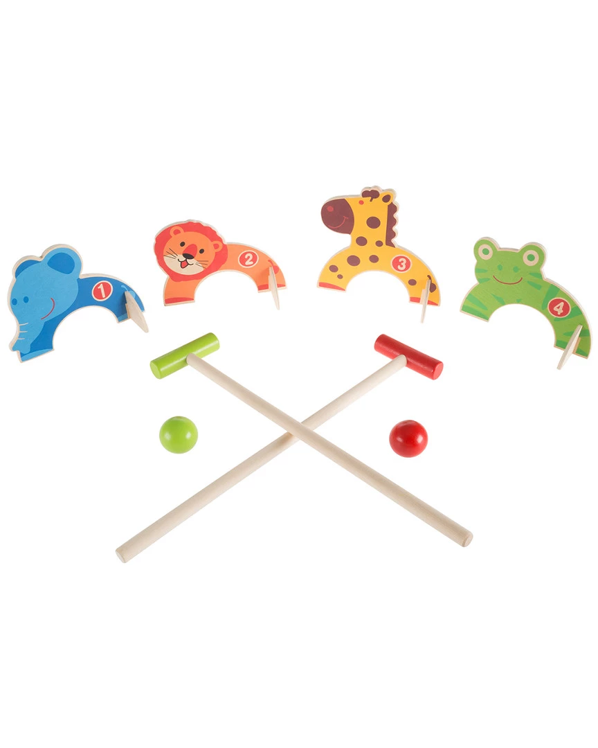 - The Kids Animal Croquet Set by Hey! Play! is a fun and adorable toy for your little boy or girl! Constructed from wood this set is well made and built to last. Croquet is an engaging way to teach your child principles of distance targeting scoring and may also help to develop hand eye coordination. Your children will love this classic easy to play game!