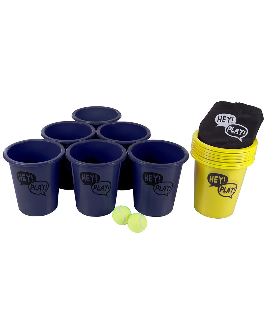 - The Large Beer Pong Outdoor Game Set for Kids and Adults with 12 Buckets, 2 Balls, Tote Bag by Hey! Play! is easy to set-up, play and store, making fun just a toss away. This is the ultimate beach, poolside, backyard, or tailgating game thats perfect for kids and adults of all ages, and can be played with an adult twist by using adult libations.
