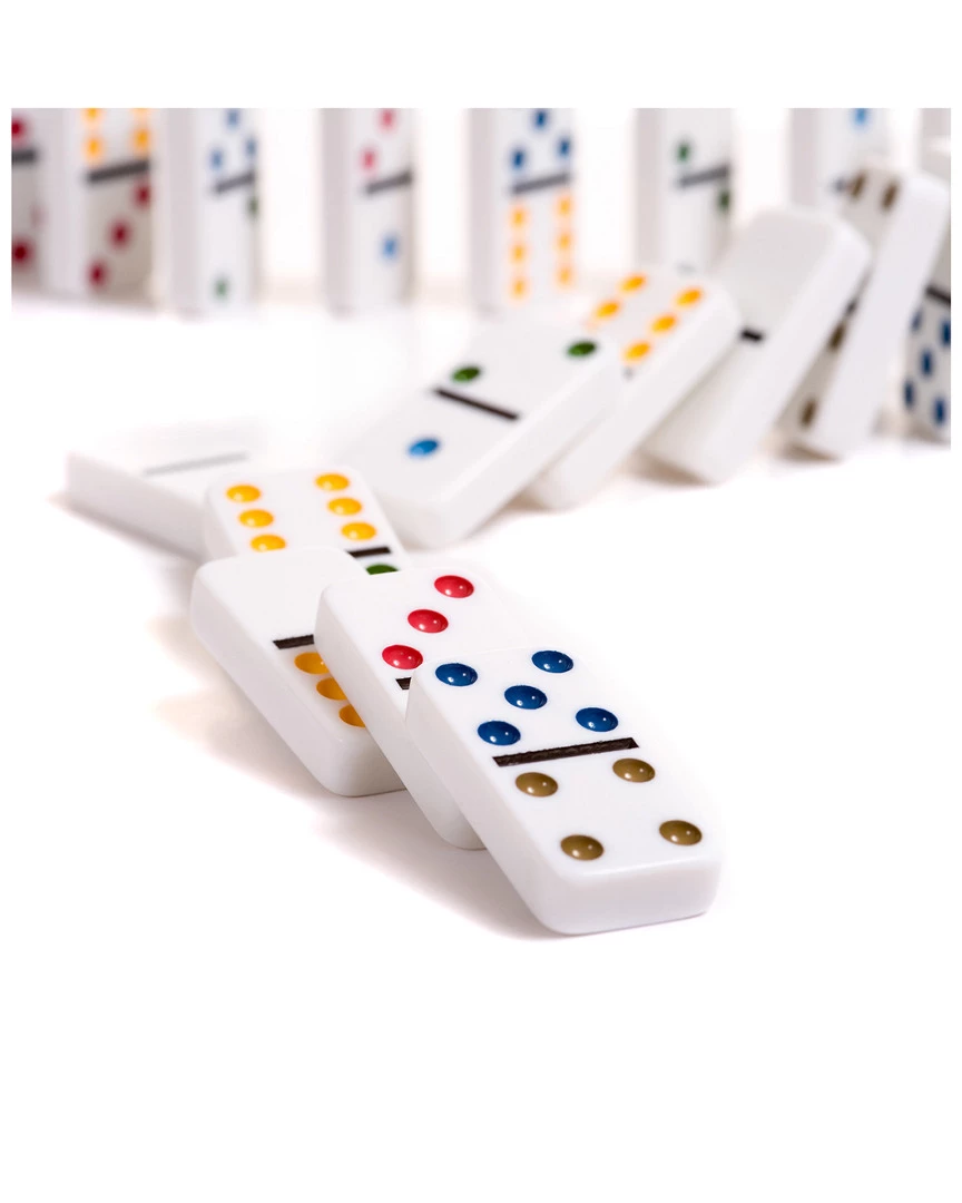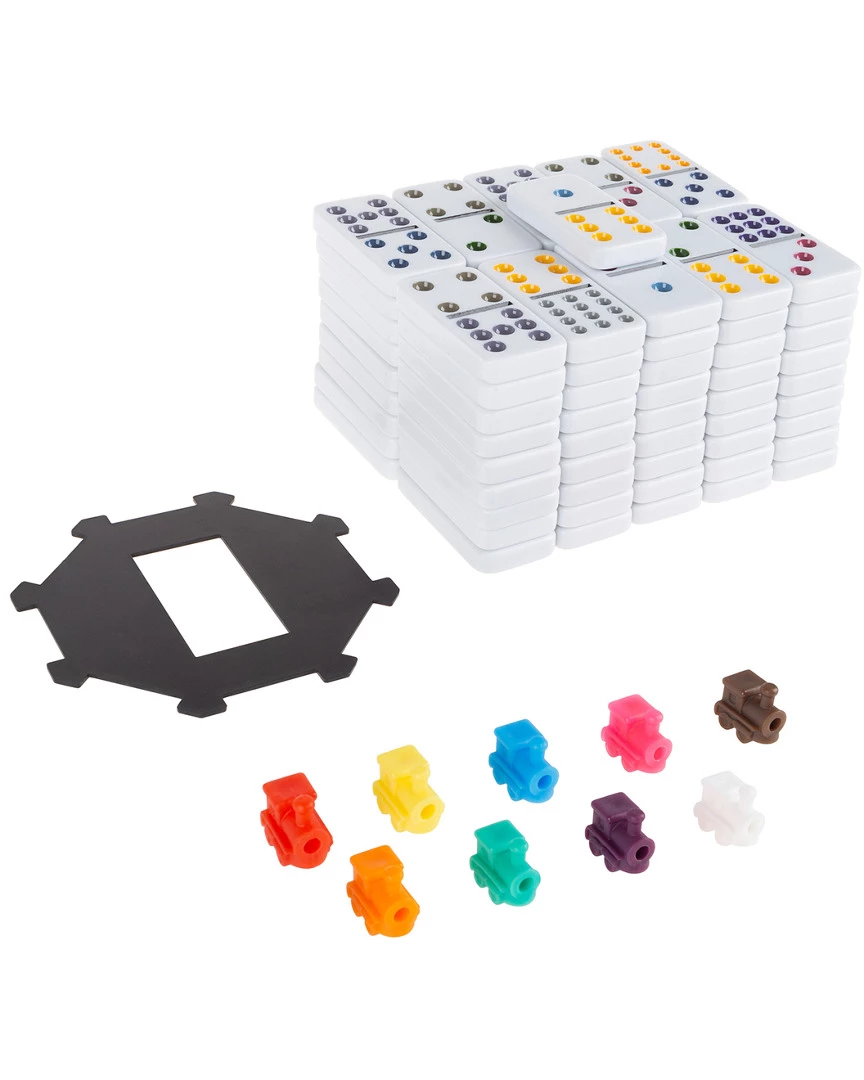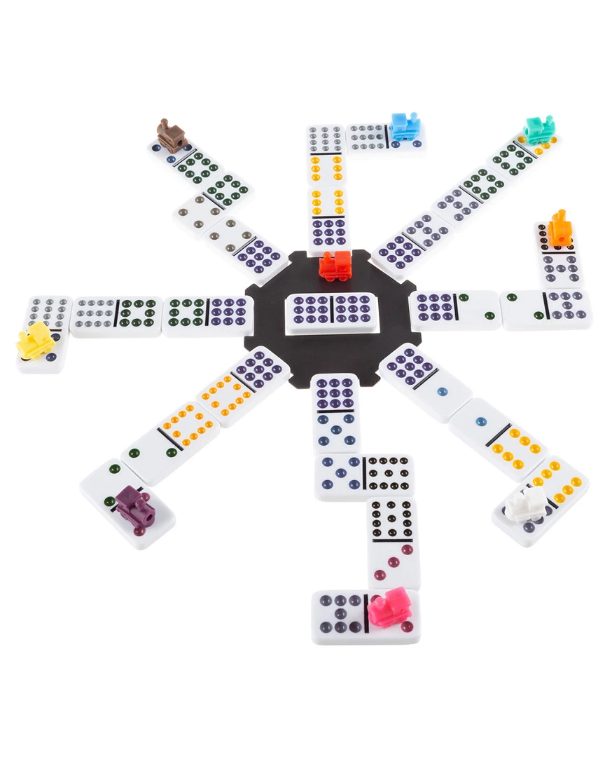 - This fun and classic Mexican Dominos Set by Hey! Play! is a competitive game for adults and children alike! This train style set can be played with 2-8 players and comes complete with 91 tiles that have colorful pips in suits 0-12, 9 plastic trains, and a center hub. Its a great educational activity to introduce children to games of strategy and critical thinking, and its also fantastic for adults as well! This old-fashioned tabletop activity is a long-lasting game that the whole family will enjoy playing for years to come.