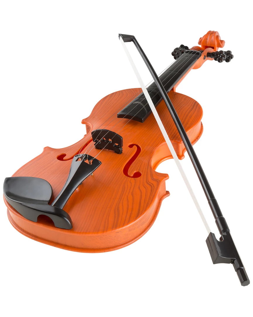 - The Musical Toy Violin with Bow Battery-operated by Hey! Play! is a fun and realistic-looking toy violin that introduces your toddler to music. Measuring 18inches long, it has the shape and feel of a real violin, has 4 adjustable strings that play notes, and comes with a bow to simulate playing real music. It is battery-operated, and plays a variety of songs at the push of a button on the back. When the violin is switched to ‘On’, pressing the strings will play the notes of the songs, making your little violinist feel like a real composer.