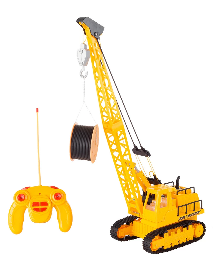 - The Remote-Control Crane by Hey! Play! is a fun and interactive toy that your child will love for years to come! This 1:30 scale construction vehicle features a 360-degree rotating base, an operational winch with a hook and a detachable cable roll. Your little construction worker will be able to maneuver this truck on semi-smooth surfaces like light sand and carpet; it has working lights and sounds, just like the real thing!