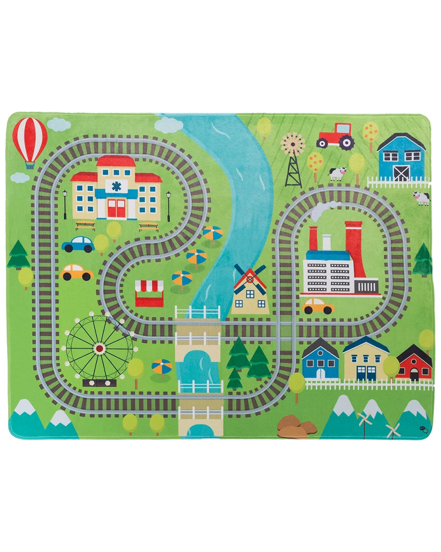 - The baby play mat with non-slip back by Hey! Play! provides a safe and soft place for babies and children to play and learn. The cushioned mat protects against hard falls during crawling and walking, and is a great learning tool for recognizing colors and parts of a train.