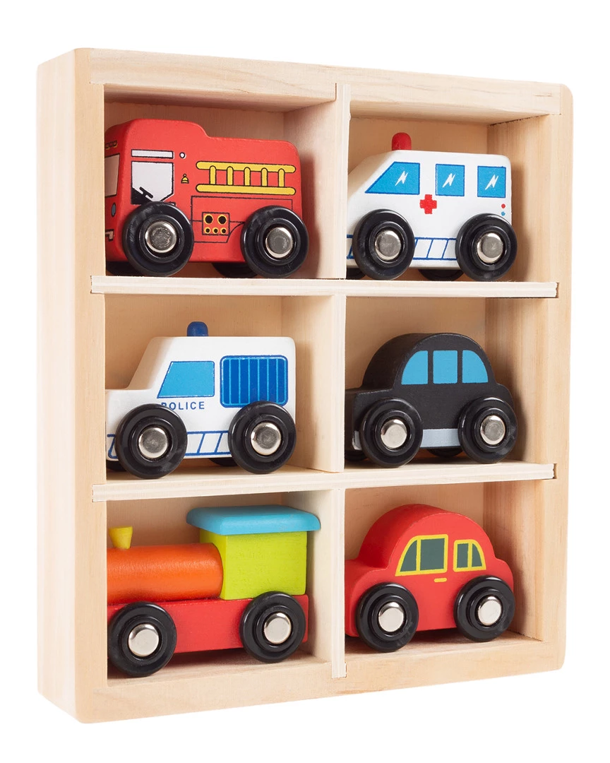 - The Wooden Car Set by Hey! Play! is a classic toddler toy that your little boy or girl will surely love! This 6-piece set comes with two cars, police and fire trucks, an ambulance, and a train engine, so your little one will have a variety of vehicles to play with. Each car in the set was hand-painted and is perfectly sized for little hands, while manipulating and playing with the vehicles can help your child with developing fine motor skills and dexterity as they have fun. A sturdy wood box is also included for easy cleanup, storage, and travel, or to display this colorful set in your childrens’ room! Your child will enjoy hours of imagitive fun with this timeless toy.